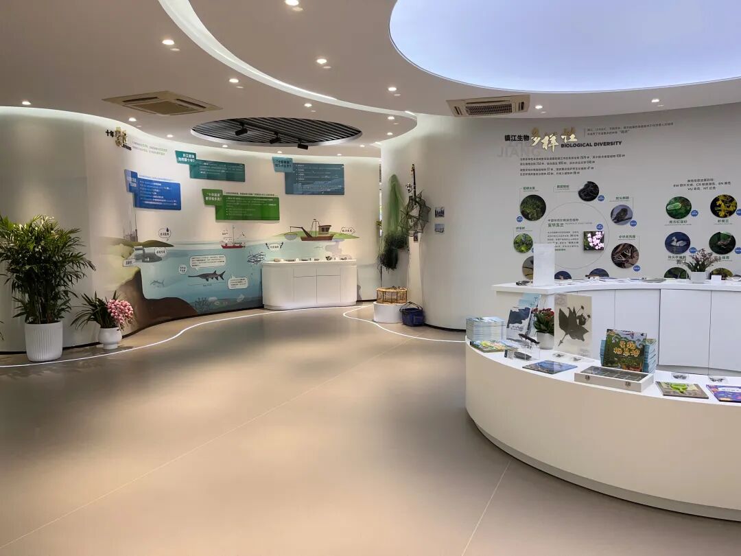 基地首期项目,生态文明融创馆包含十年镇江生态文明建设成果展示区、长江生物多样性标本科普区、模拟法庭(兼具巡回庭审、生态教室)等3个功能区域。长江生物多样性标本科普区内含中华鲟等珍稀标本,并结合十年禁渔和镇江生物多样性调查,布设科普宣传空间。