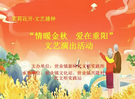金秋送爽,丹桂飘香,又到了岁岁重阳、今又重阳的温馨时刻。世业镇新时代文明实践所、世业镇文化站将共同举办“情暖金秋 爱在重阳”文艺演出,用歌声传递祝福,用舞蹈诉说......