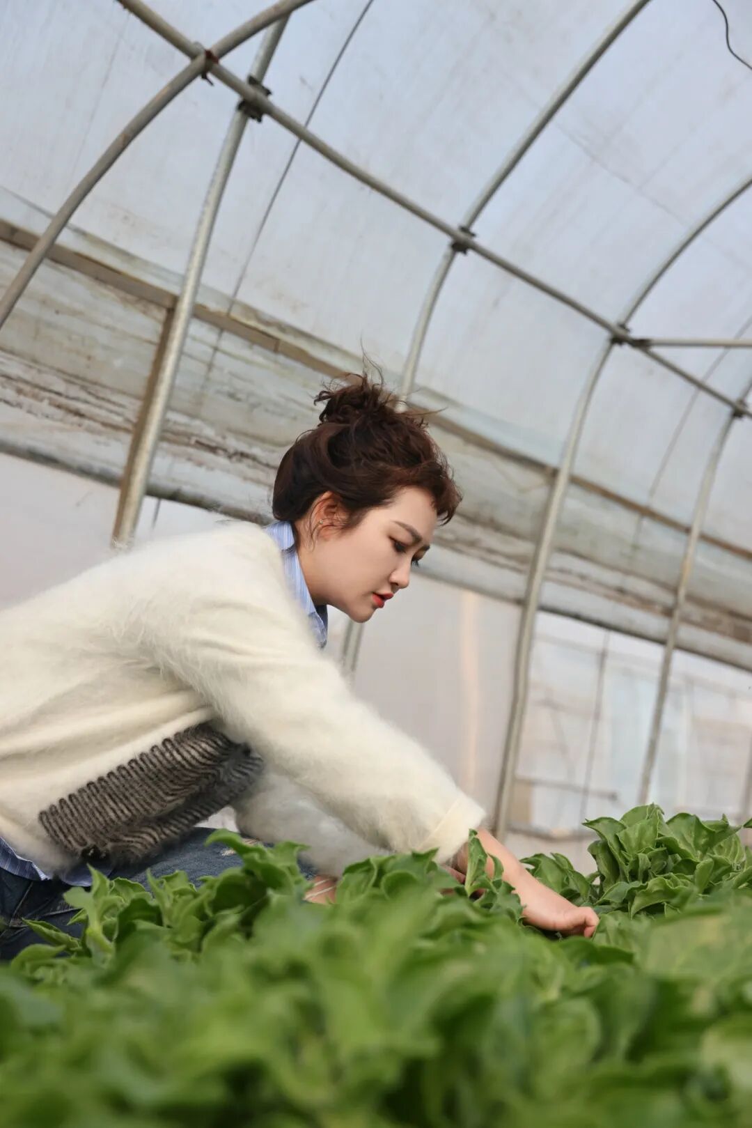 聂珊珊正在和工作人员一起采摘
